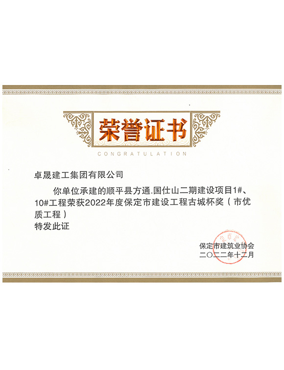 2022年12月    荣获“保定市修建工程古城杯奖(市优质工程)”