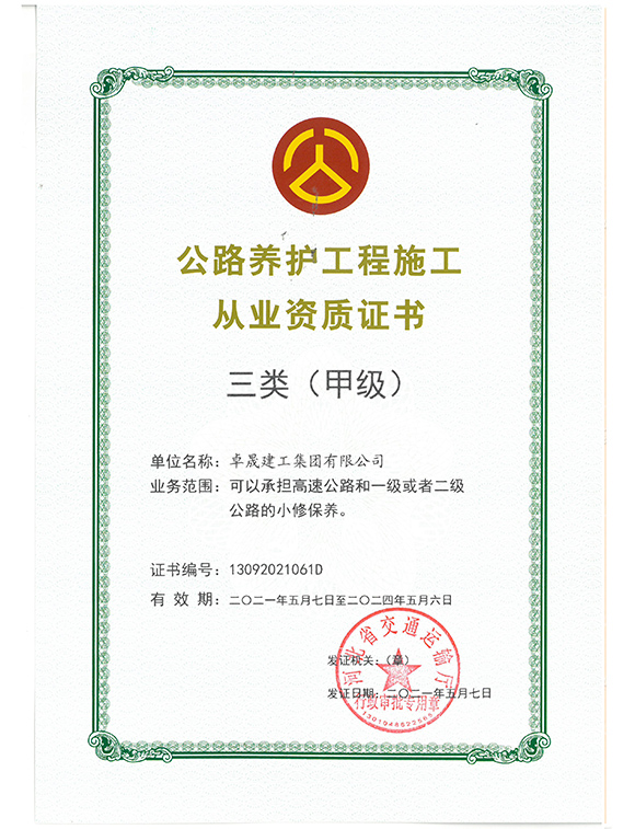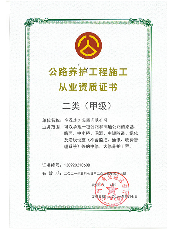 2012年6月      获批“公路工程施工总承包贰级资质”