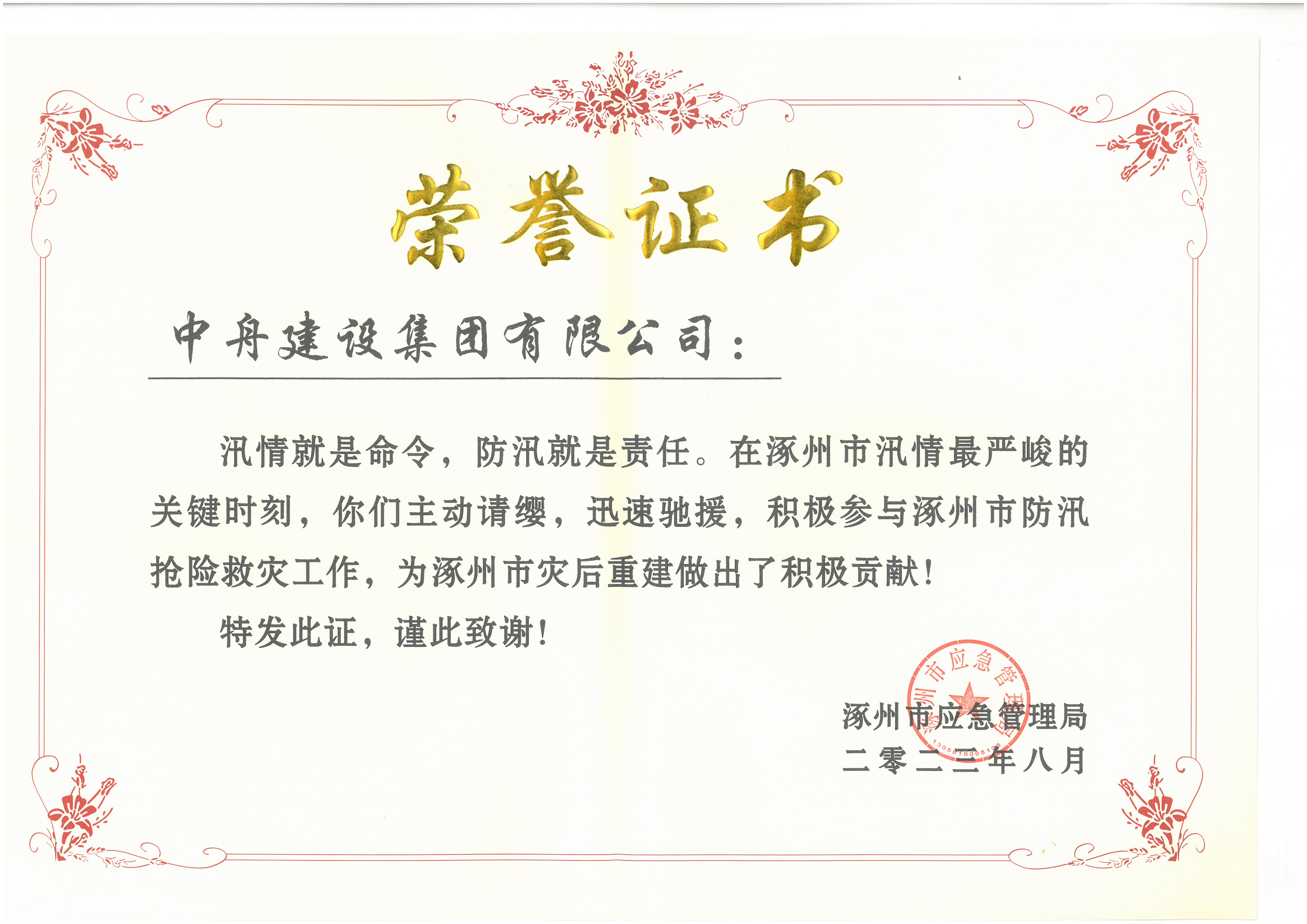 2023年3月      获批“市政公用工程施工总承包贰级资质”