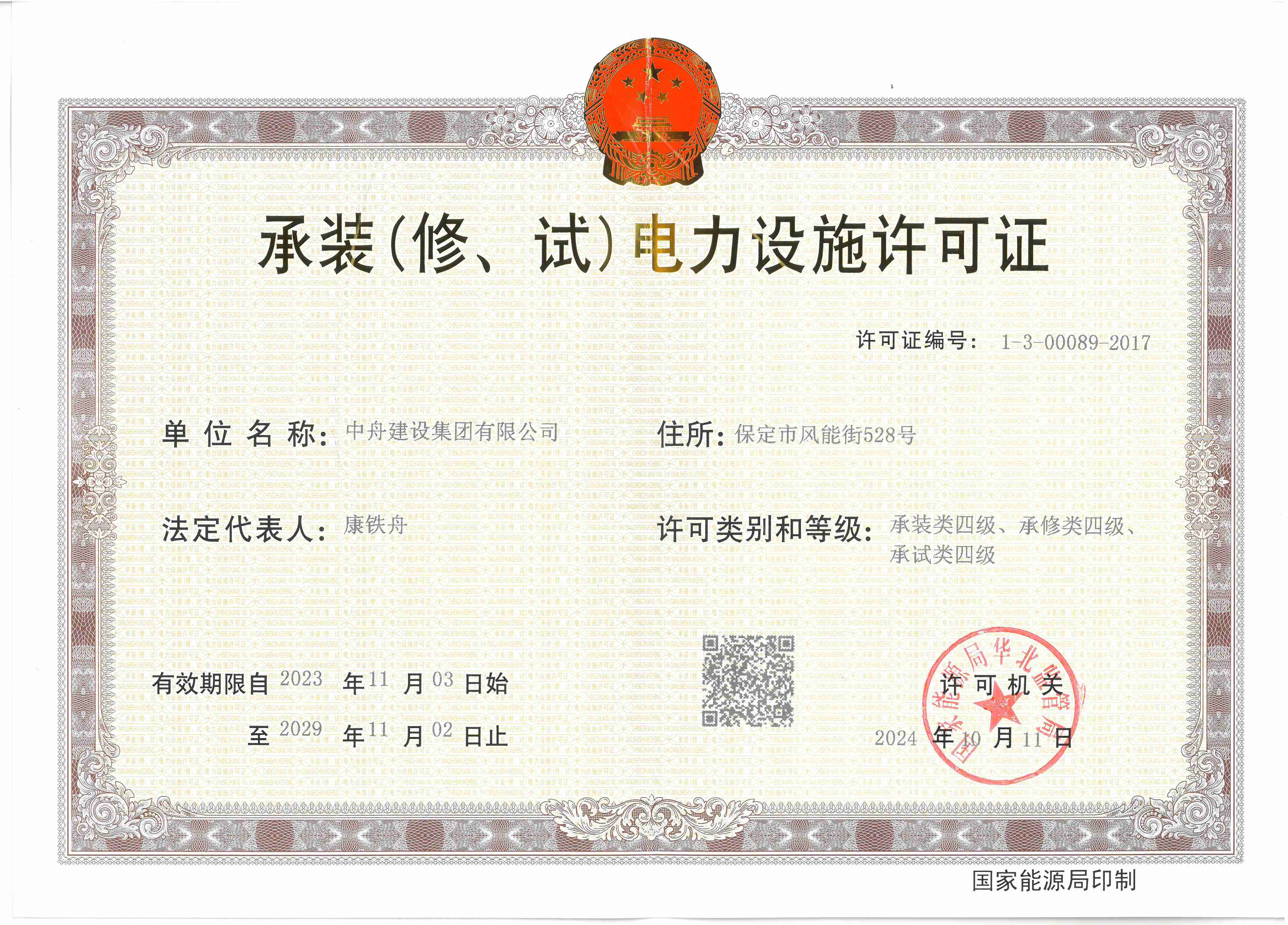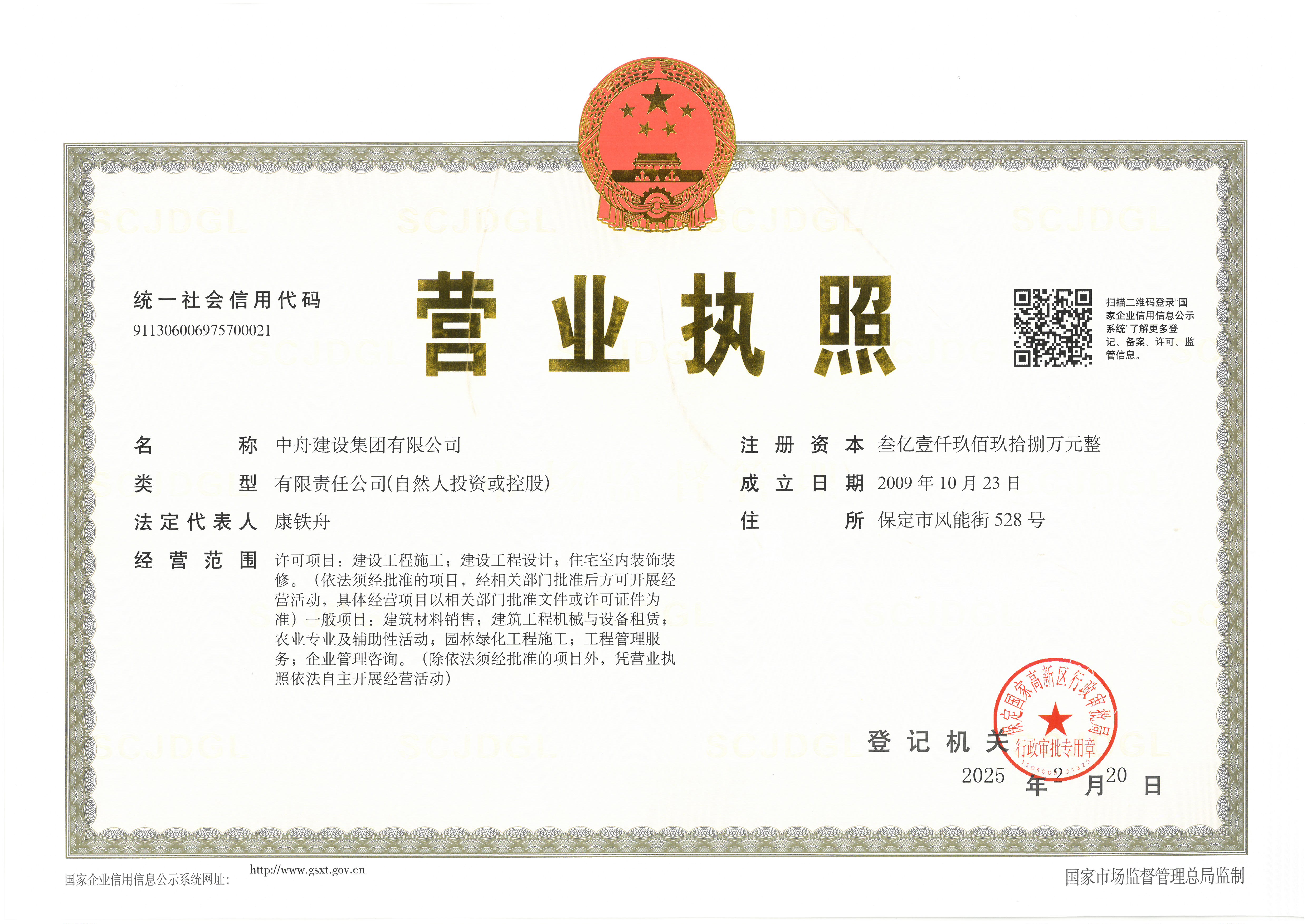 2023年5月      获批“修建装修装饰工程专业承包壹级”